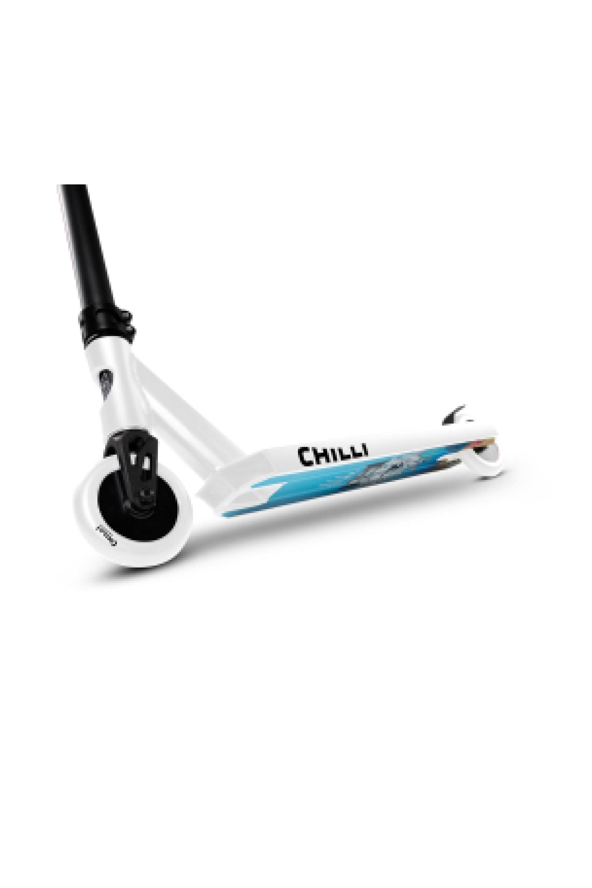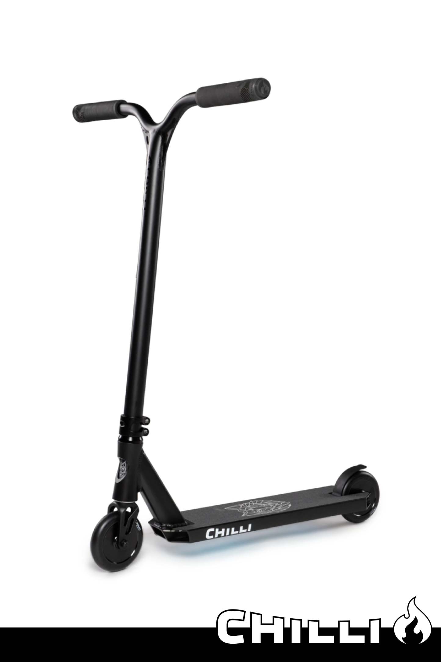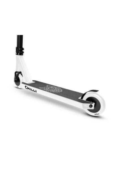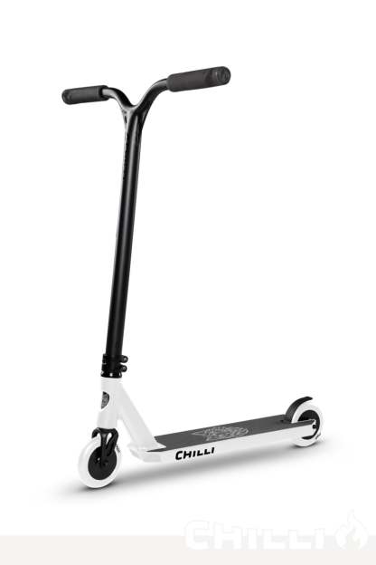 Chilli Pro Rider Archie Cole has developed his personal signature scooter based on the geometry of our popular all-round beginner scooters. The targeted modifications to the headtube (which has been cut out), the new fork, the slim 2-bolt M8 clamp, and the superlight aluminum T-bar take the Archie Cole Scooter to a new level. The unique design on the bottom of the deck is reminiscent of Archie's hometown where his stunt scooter career began. The development and testing phase took more than 15 months. The result: Archie Cole's personal favorite setup with Spider IHC compression system. Extremely durable, yet light enough for the champions.