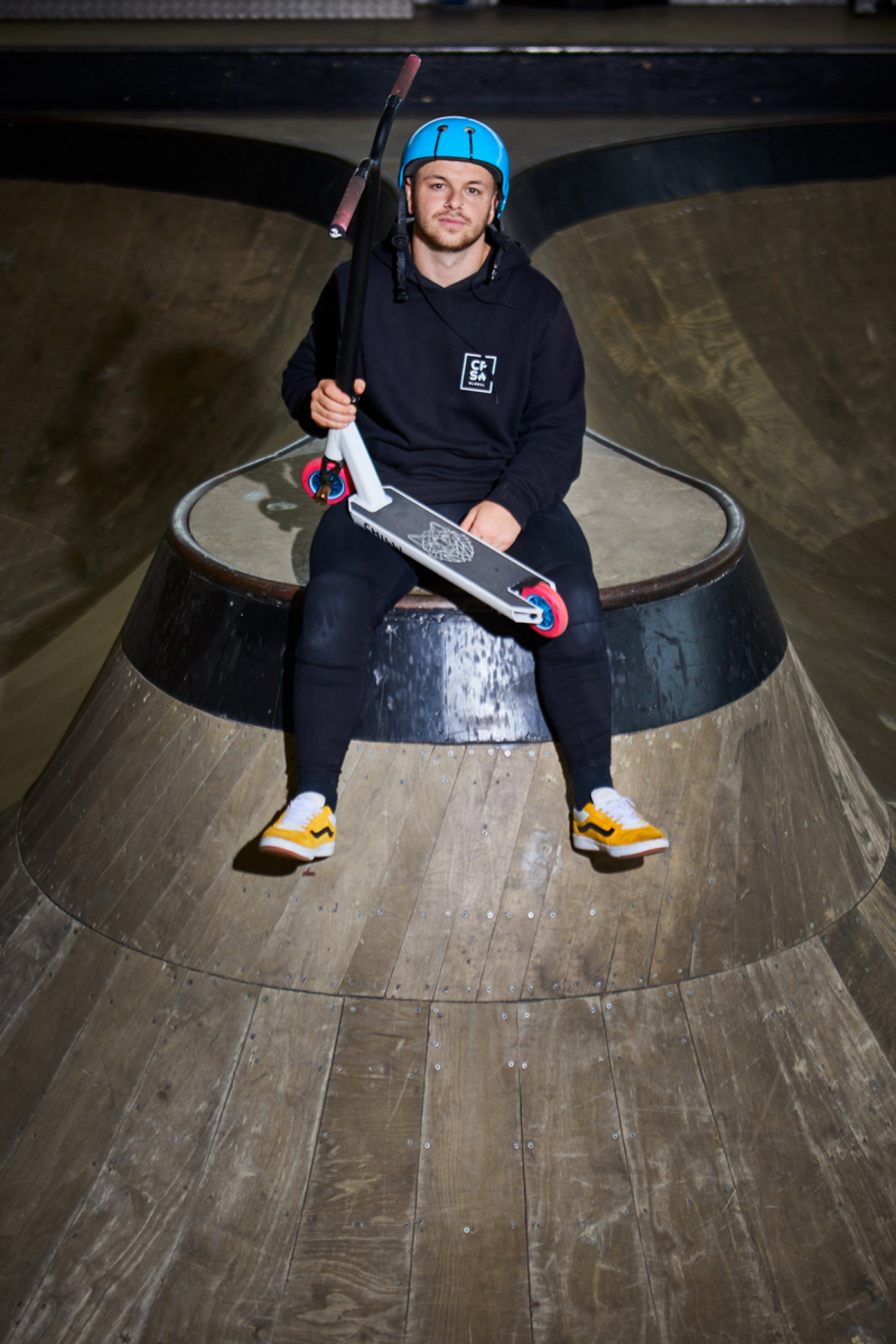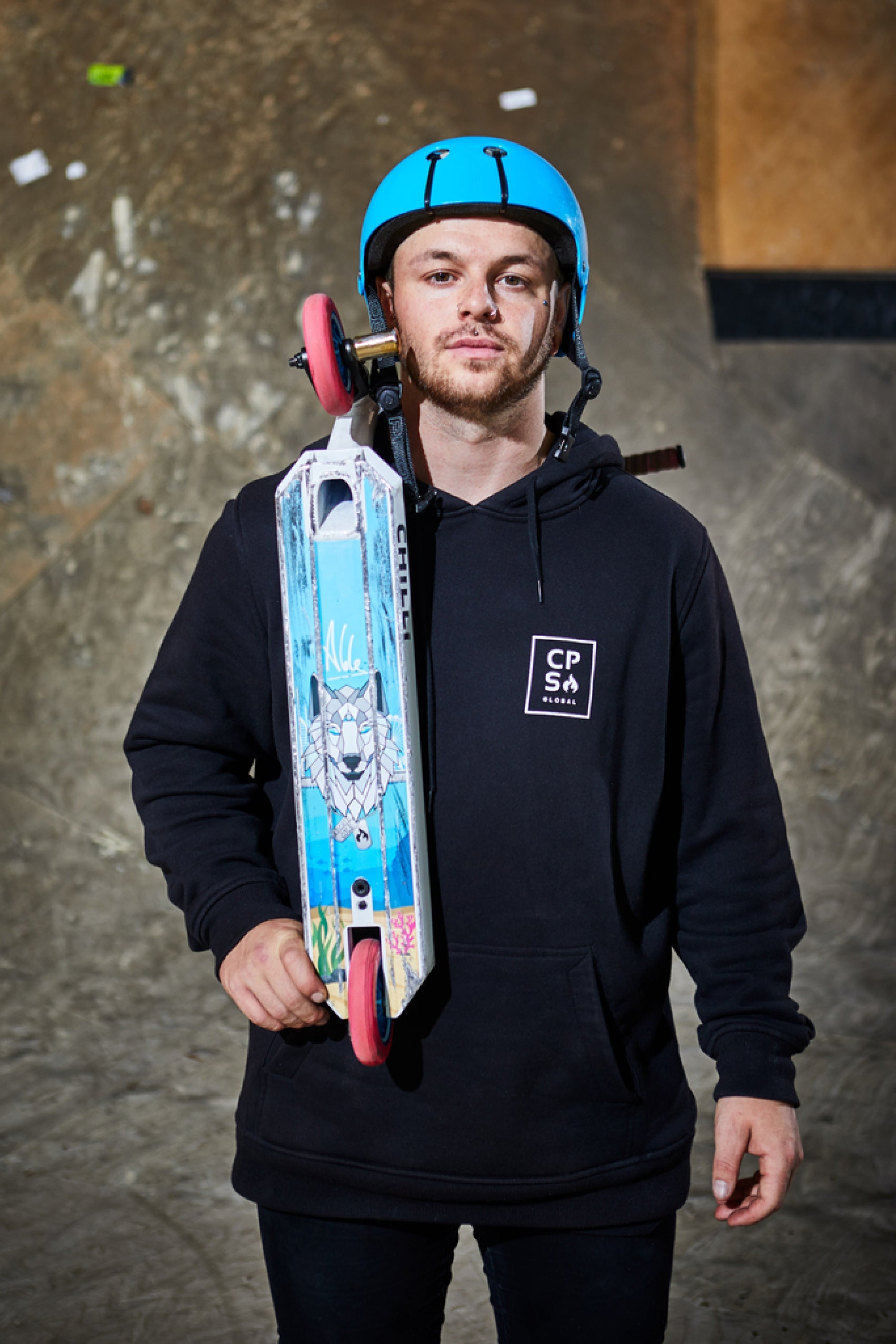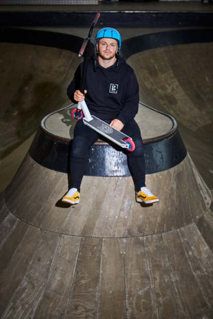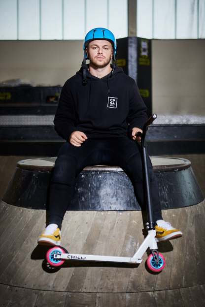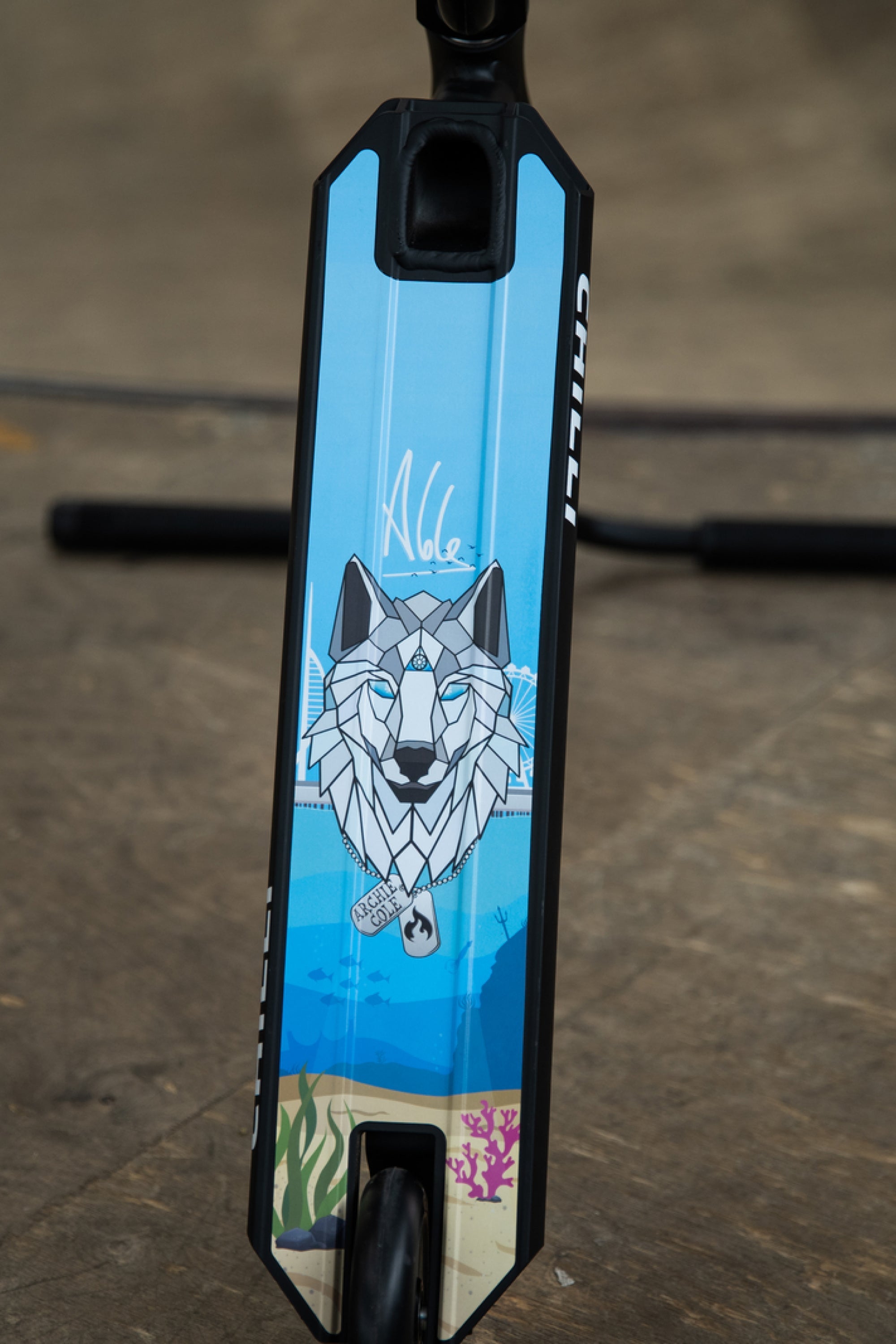 Chilli Pro Rider Archie Cole has developed his personal signature scooter based on the geometry of our popular all-round beginner scooters. The targeted modifications to the headtube (which has been cut out), the new fork, the slim 2-bolt M8 clamp, and the superlight aluminum T-bar take the Archie Cole Scooter to a new level. The unique design on the bottom of the deck is reminiscent of Archie's hometown where his stunt scooter career began. The development and testing phase took more than 15 months. The result: Archie Cole's personal favorite setup with Spider IHC compression system. Extremely durable, yet light enough for the champions.