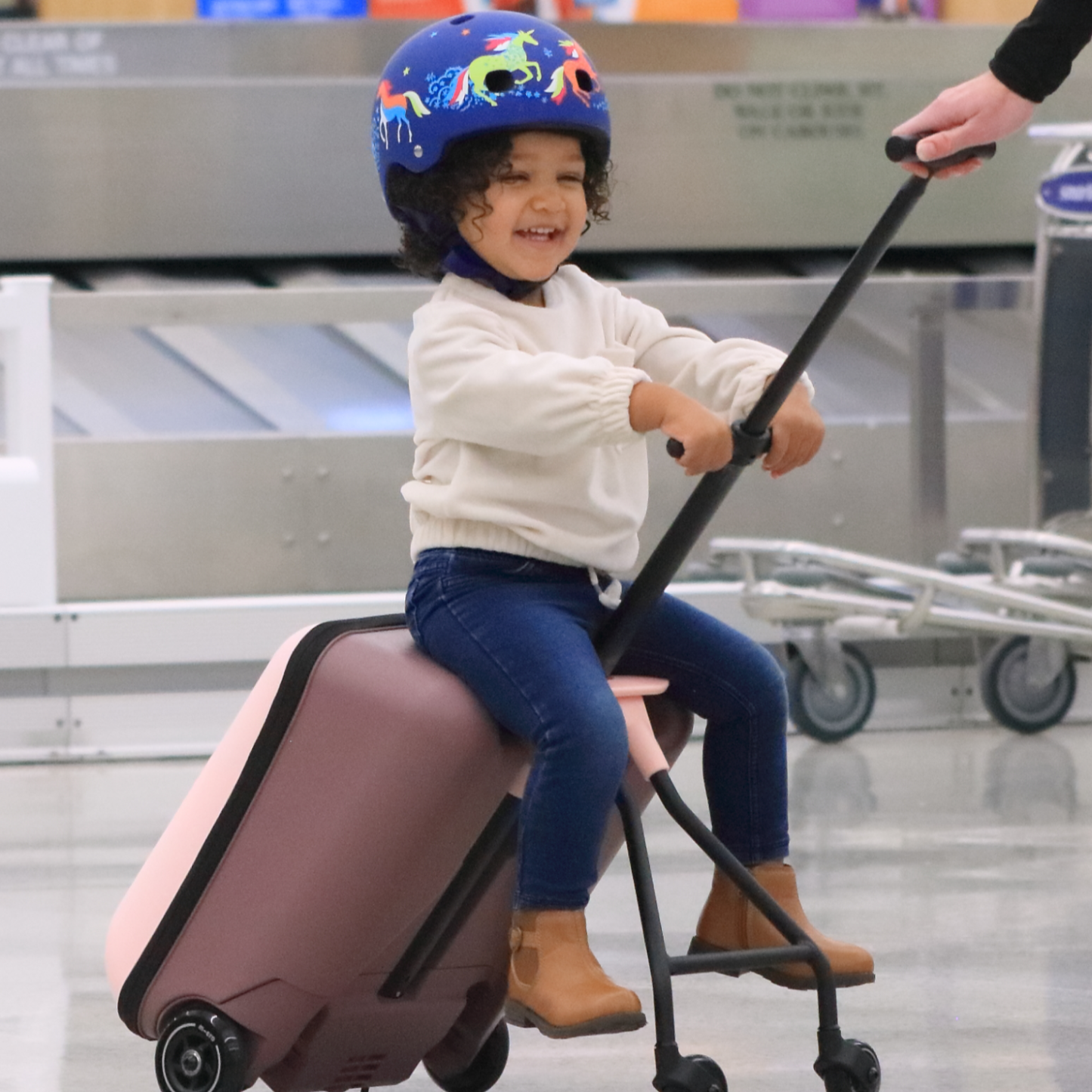 Innovative, multifunctional ride-on cart adding convenience, fun, and fashion to every trip. Equipped with a detachable case with ample storage, a telescopic handle, and a set of foldable, stabilizing wheels.