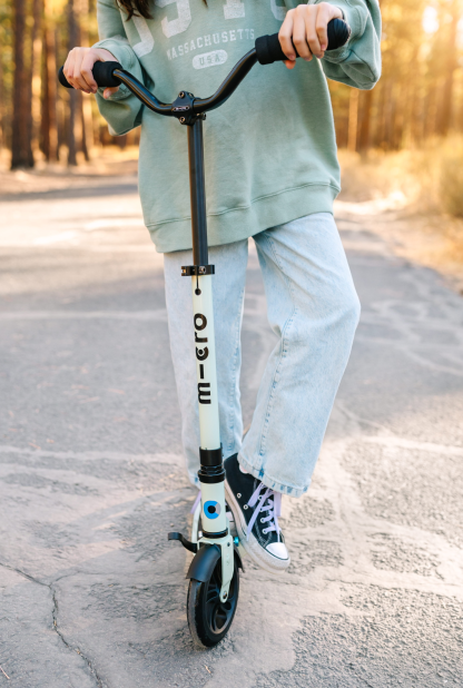 micthtro’s classy two-wheeled scooter, designed with large wheels to go further, faster and chopper-style handlebars for a comfortable, relaxed grip.