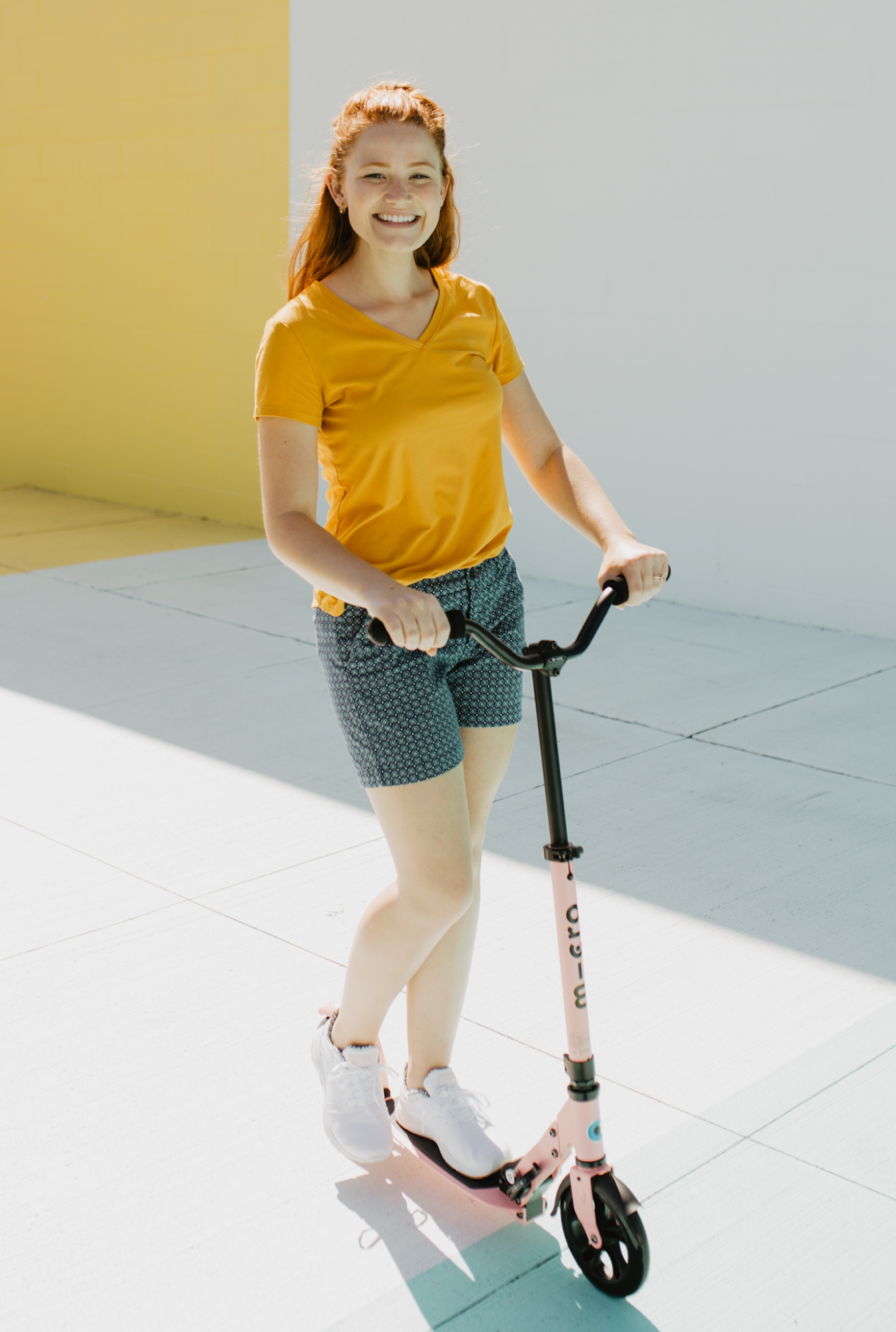 Featuring an adjustable handlebar for a tailored scooting position, a two-way kickstand, and a foldable frame to store and carry with ease.