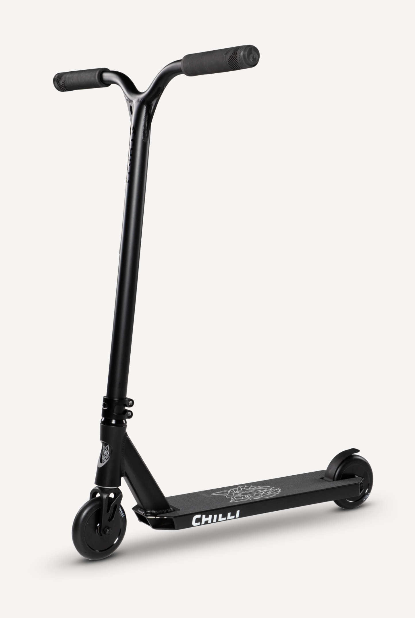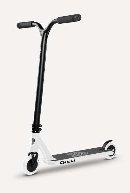 Chilli Pro Rider Archie Cole has developed his personal signature scooter based on the geometry of our popular all-round beginner scooters. The targeted modifications to the headtube (which has been cut out), the new fork, the slim 2-bolt M8 clamp, and the superlight aluminum T-bar take the Archie Cole Scooter to a new level. The unique design on the bottom of the deck is reminiscent of Archie's hometown where his stunt scooter career began. The development and testing phase took more than 15 months. The result: Archie Cole's personal favorite setup with Spider IHC compression system. Extremely durable, yet light enough for the champions.