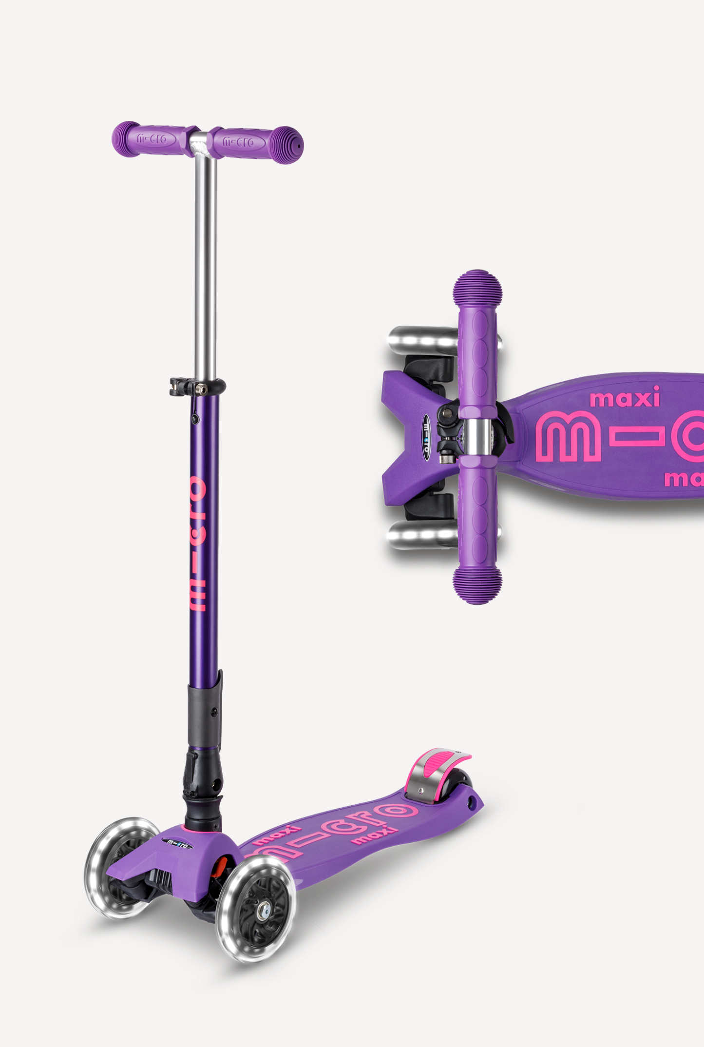 The most portable scooter featuring a foldable design, light-up wheels (no batteries needed), and an adjustable handlebar to grow with the rider.